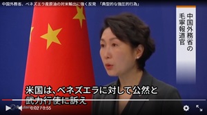 中国外務省は3日、コメントを発表し「アメリカの覇権的行為は国際法に著しく違反し、ベネズエラの主権を侵害しており、地域の平和と安全を脅かす」として強く非難した。