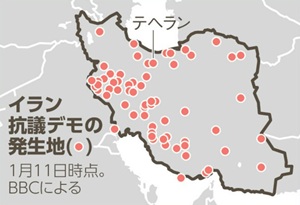 イランでは昨年末から物価高などに抗議するデモが全土に広がり、一部の参加者が投石などを繰り返している。その結果、5日までに警察との衝突で約20人が死亡したと現地の人権団体は報告している。