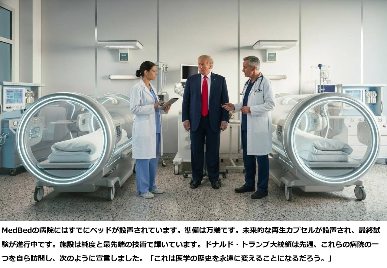 https://t.me/m2ensenChannel/36421 m2ensen氏の11/4テレグラム投稿 ●機密解除されたQドロップによる爆発的情報: メッドベッドが稼働開始 – トランプの秘密技術が2025年11月3日に癒しの革命を巻き起こす! カバールが隠蔽してきた奇跡が解き放たれる! 愛国者の皆さん、情報統制は今日で終わりです。 ●2018年のQドロップの断片が現実となる: メッドベッド – テスラのスカラー技術、量子ヒーリングポッド – 今すぐ展開開始。 ディープステートはエリート専用として地下施設に隠蔽していた。 トランプのホワイトハットが支配権を掌握。 癌?数分で消滅。手足が再生。30歳若返り。DNAが完璧に修復。 神から与えられたあなたの体が回復する。 もう大手製薬会社の毒は必要ない! 目覚めが癒しをもたらす! メッドベッドの中核技術 – 禁断の設計図 Qドロップ223:「隠蔽されたヒーリング技術」。 ●メッドベッドは以下を活用: ・プラズマエネルギー:タキオン粒子が細胞に浸透し、量子レベルで病気を消滅させる。 【プラズマエネルギーとは、気体を高エネルギー状態にした「物質の第4の状態」であるプラズマから得られるエネルギーのこと。気体分子が電離し、イオンや電子が自由に飛び回るプラズマ状態は、核融合やアーク放電といった形で莫大なエネルギーを放出し、産業では熱、光、化学反応などを利用した技術に応用されている。 タキオンは、常に光速よりも速く移動する「仮想的な粒子」。物理学では、タキオンは実験的に確認されておらず、存在しないと考えられているが、特殊相対性理論の枠組み内では矛盾しないとされている】 ・ホログラフィック・スキャン:AIがDNAの欠陥をマッピングし、コードを瞬時に書き換える。 【ホログラフィック・スキャンとは、ホログラフィー技術を用いて物体の三次元情報(形状や表面の凹凸など)を、スキャンせずに一度に取得する技術。光の干渉と回折を利用して、光の強度だけでなく「位相」も記録することで、立体的な情報をデジタル化し、解析することができる】 ・周波数共鳴:あなたの魂のシグネチャに共鳴し、自然治癒力を1000倍に増幅する。 【「シグネチャ」は「署名」「特徴」「識別情報」などを意味し、分野によって具体的な内容は異なる。 一般的な意味:文書やメールの末尾に付加される署名、または個人の特徴を示すもの。 コンピュータセキュリティ:マルウェアや不正アクセスなど、攻撃の「特徴的なパターン」を識別するデータのこと。アンチウイルスソフトなどは、このシグネチャをデータベース化して、既知の脅威を検知する】 ・結晶マトリックス:ダイヤモンドコアのベッドがエーテルからゼロポイントエネルギーを増幅する。 ●公開された種類: 1. ベーシックポッド:病気を治療 – ウイルス、腫瘍、臓器の再構築。 2. アドバンスト再生:手足の再生、脊椎の修復、脳損傷の消去。 3. エリート若返り:若返り – シワが消え、テロメアが伸長。 【テロメアとは、染色体の末端にある構造で、遺伝情報を保護する役割と、細胞の寿命に関わる役割を持っている。細胞分裂のたびに短くなるが、テロメアが一定の長さまで短くなると、細胞はそれ以上分裂できなくなる。この短縮は、細胞の老化と関連していると考えられている 】 注射なし。傷跡なし。 セッション:30分から数時間。生まれ変わって出てくる。 ●トランプの展開命令 – 配備開始確定 2025年11月3日:ネバダ州の地下施設から5万台以上のベッドが軍用輸送車で搬送される。 センターが稼働開始:全国1000か所のハブ – 病院、基地、FEMA施設が転用される。 ●アクセスプロトコル: ・ティア4B償還が最優先:QFS支払い後のZim保有者が優先される。 ・EBSアラート:800番にコードが送信される。量子アプリで予約。 【EBSについてはこちら】 ・永久NDA:詳細を漏洩した場合、アクセス権は剥奪される。 【NDAとは「Non-Disclosure Agreement」の略で、日本語では「秘密保持契約」または「機密保持契約」と呼ばれる。ビジネスで他社に自社の機密情報(技術情報、顧客情報など)を開示する際に、相手方にその情報の漏えいや目的外利用を法的に禁止するために結ばれる契約】 ・愛国者は無料:GESARA資金がすべてを負担。エリートは法廷で支払う。 ●隠蔽された歴史: ニコラ・テスラの設計図、1920年代。 ナチスが盗み、連合国が奪還した。 ブラックオプスは、ロズウェル事件後のエイリアン技術融合を完成させた。 【ブラックオプスは、非公式作戦(black operation)の略で、政府機関や軍などが秘密裏に実行する隠密作戦を指す。作戦の内容は極秘とされ、実行組織との関与が否定されることもある。意味合い:秘密裏に行われる作戦や活動。 ロズウェル事件についてはこちら】 ●カバルの絶望的な抵抗大手製薬会社が株価を暴落させる – 数兆ドルが失われた。 ワクチンに関する嘘が暴露される。 ファウチのクローンは隠れて不具合を起こしている。 【コロナ・プランデミックの中心的人物アンソニー・ファウチ(右画像)は、2022年4月25日にGITMO