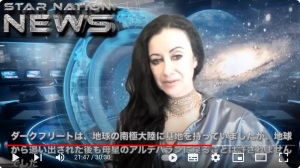 ■ スター・ネイション・ニュース 6 ●プレアデス星団からのニュース ・プレアデス人の中にも、退行的(ネガティブ)な部族、人がいる ・銀河連合の大使アクバルは、アルキオネ星系のタリハラ星に派遣されている ・タイゲタ星系の反逆的なタアル種族は、アルキオネ星系のタリハラ星に移住した ・反逆的なタアル種族は、シカール帝国やネブ帝国と手を結んだ ・反逆的なタアル種族は、ナチス・ドイツに協力していた ・反逆的なタアル種族は、シカール帝国と手を切ることを検討している ・プレアデス人と言っても、友好的な者、非友好的な者がいる ●オリオン座アルニラム星のザガラ評議会からのニュース ・ザガラ評議会は、ダルマ・トレーニング・スクールを再開する ●アヌンナキの王子イアからのメッセージ ・生きとし生けるものは、創造主と同じ純粋な光からできている ・人類は目覚める時を迎えた ●銀河間連合からのニュース ・アルティアンの母船の司令官は、月より低い軌道上に30機を配置した ●特使エレナからーーダルマスクールについて |